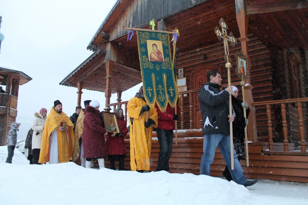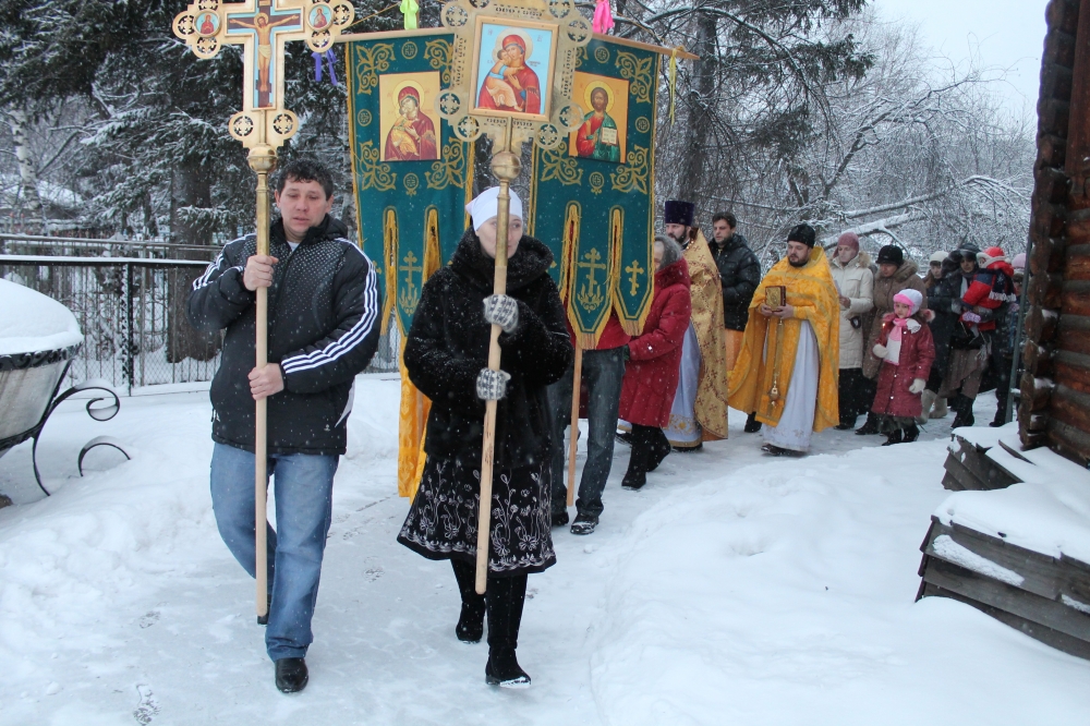 Завершилось Богослужение праздничным молебном и Крестным ходом вокруг храма, сопровождаемым песнопением, окроплением святой водой и чтением св.Евангелия.